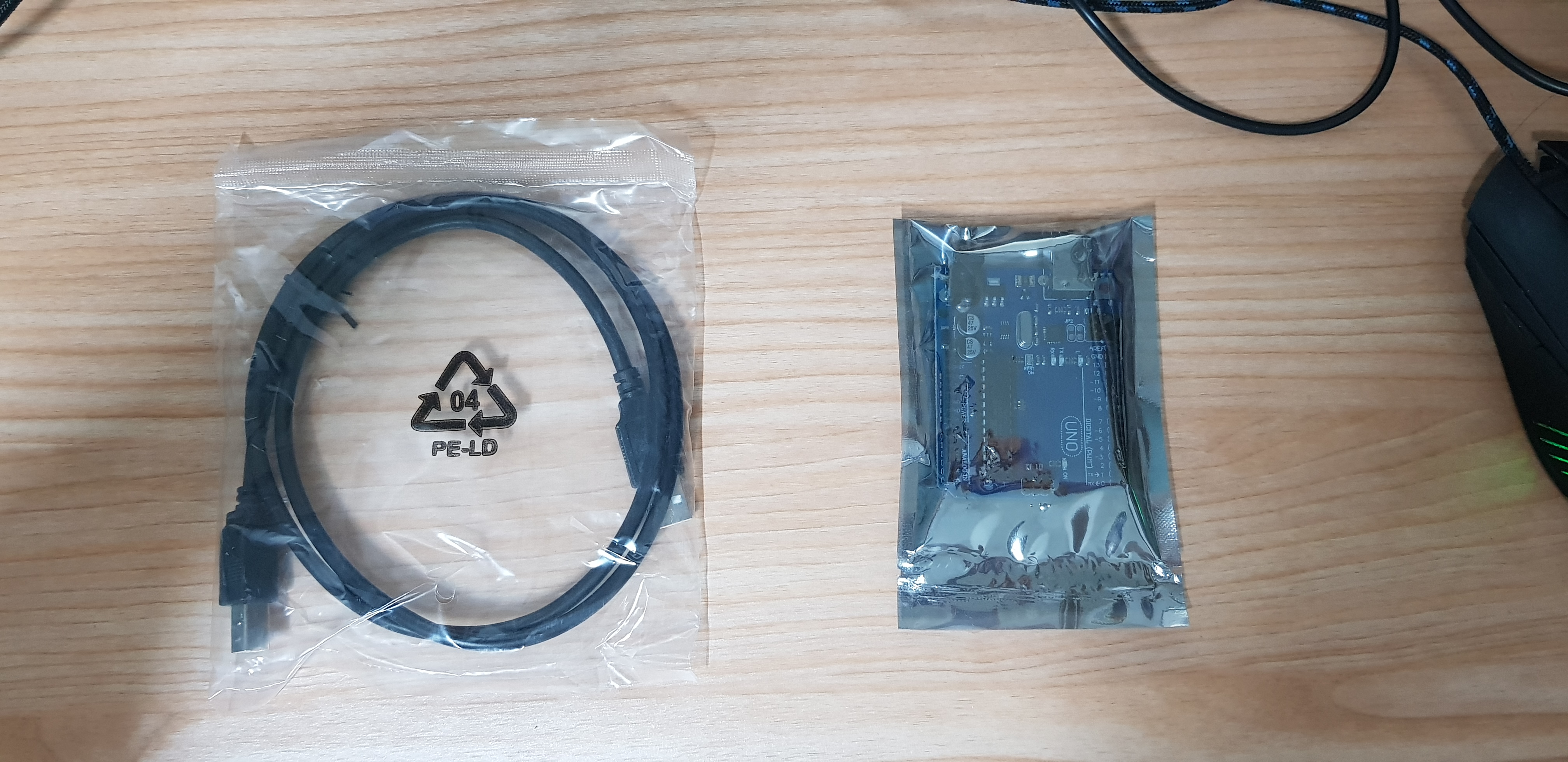 키트에 포장되어 있는 아두이노 우노 보드와 통신케이블을 꺼내서 꺼내주시고