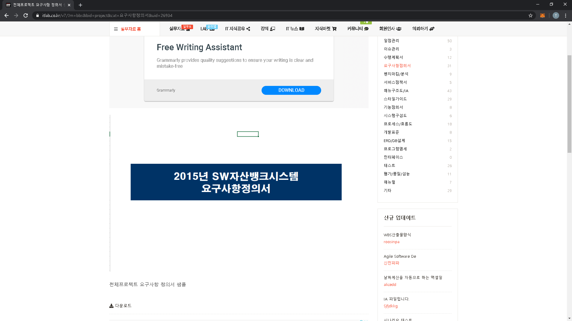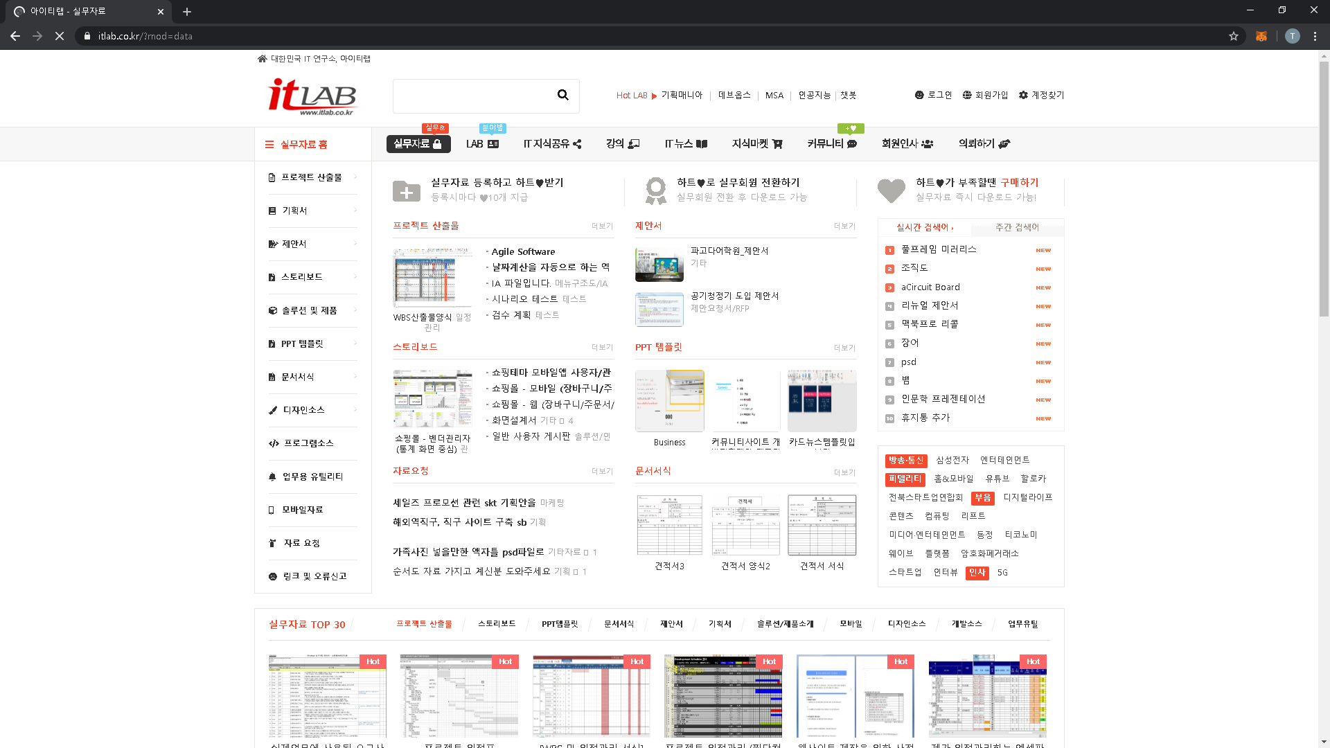 그래서 IT 산업 분야에서 분야별 보고서 양식이나 실무 프로세스에 대한 참고자료가 많이 공유되어 있는 사이트 하나를 소개드리겠습니다.