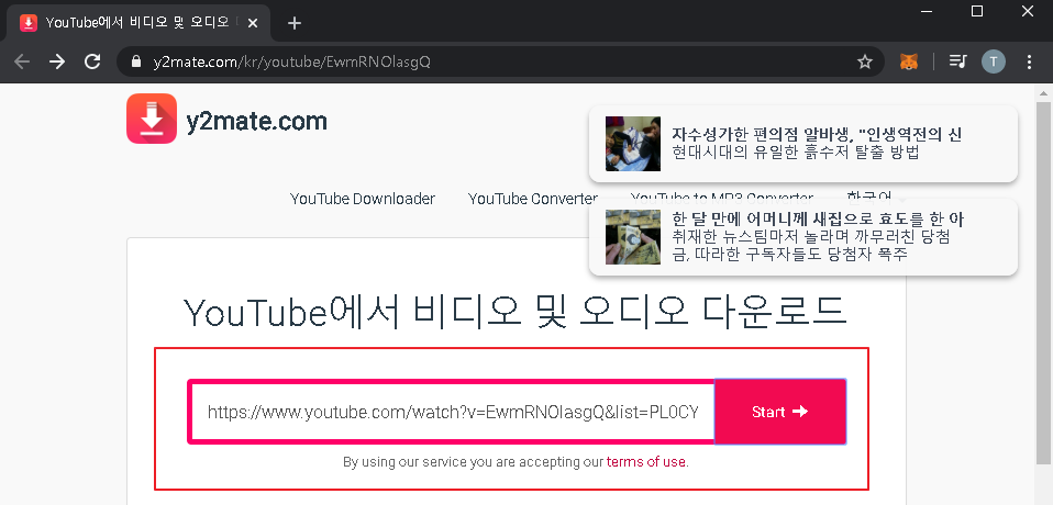 그래서 간단하게 웹사이트를 이용해서 유튜브 동영상을 추출하는 방법을 소개하겠습니다.