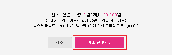 신청 후에 나타나는 알림창은 금액과 권 수를 다시 한 번 확인한 뒤에 '계속 진행하기' 버튼을 눌러주시면 됩니다.
