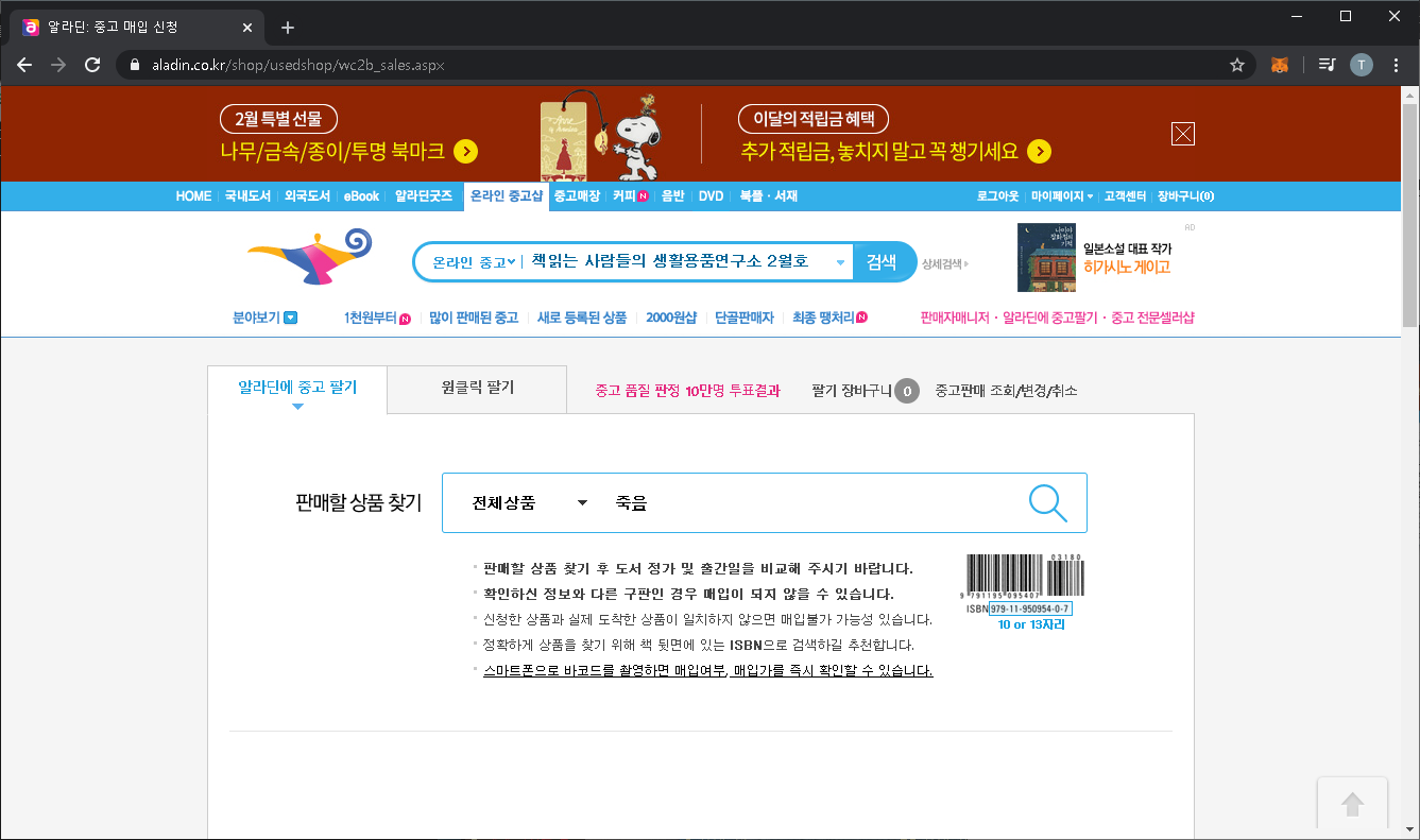 참고 페이지 : http://used.noranbook.net/index_used.asp