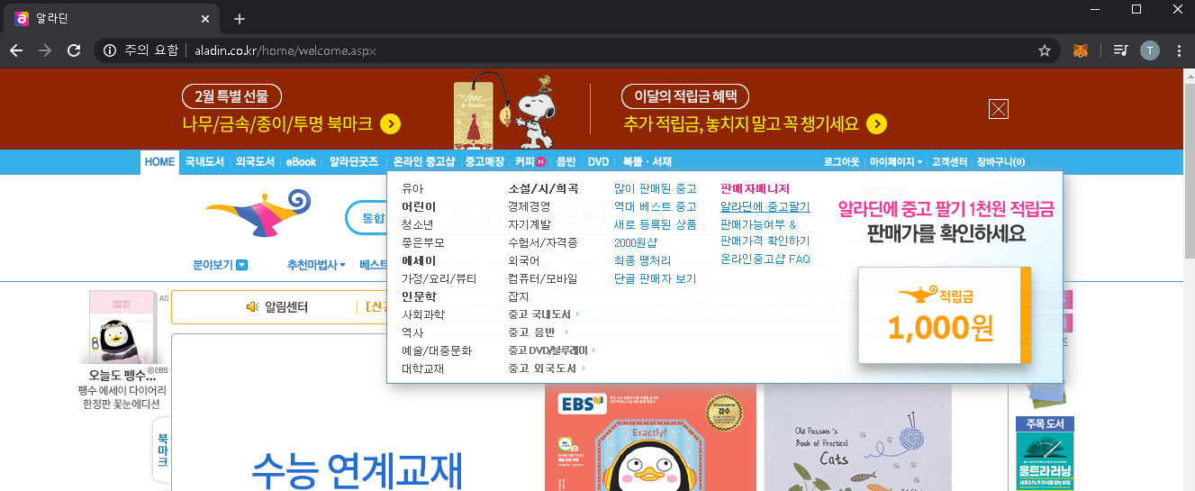 먼저 제가 애용하는 곳은 '알라딘' 입니다.