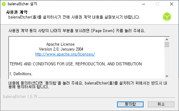 다운로드 받은 설치파일을 실행해서 '동의함' 버튼을 눌러 설치를 진행해주시면 되겠습니다.