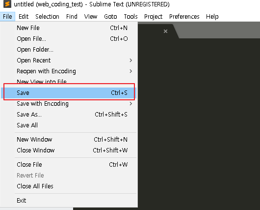 [File] 탭에서 'Save' 버튼 또는 키보드의 [Ctrl] + [S] 키 동시 입력 입니다.