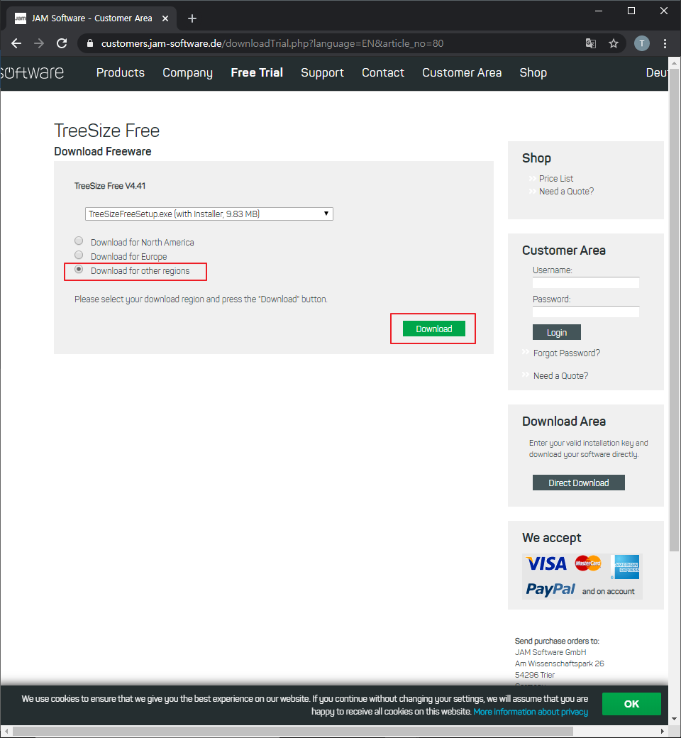 Free Download 버튼을 눌러 이동한 페이지에서 'Download for other regions' 에 체크를 한 뒤에 'Download' 버튼을 눌러주시면 됩니다.