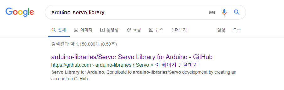 검색 창에서 Arduino Servo Library를 검색해주시면 제일 위에 있는 GitHub 페이지로 접속을 해주면 됩니다.
