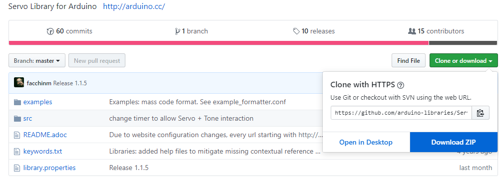 먼저 지난 포스팅의 Servo 라이브러리를 계속해서 활용해서 해보겠습니다. 라이브러리를 압축파일(Zip)로 받는 방법부터 설명을 드리면 다음과 같이,