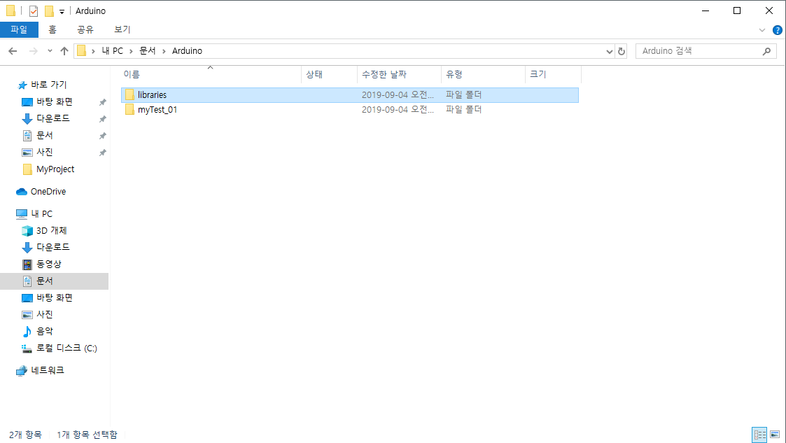 라이브러리 폴더는 [문서] - [Ardiono] 경로 안에있는 [libraries] 폴더를 찾으실 수 있습니다. \