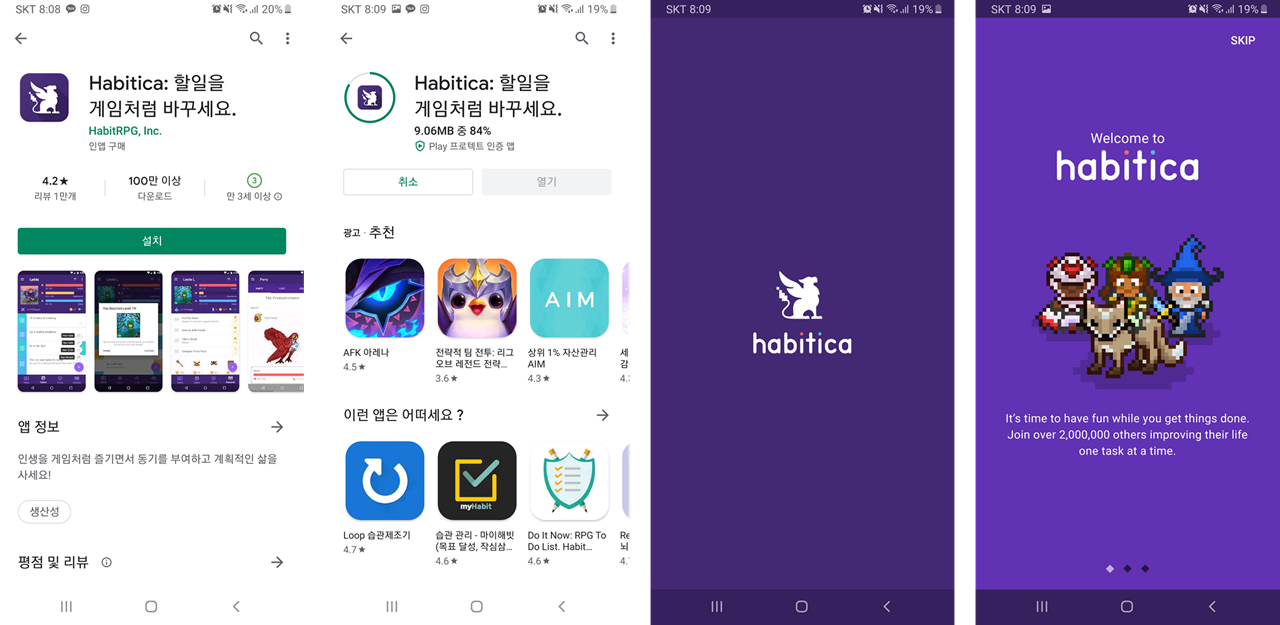 플레이스토어에 "Habitica : 할일을 게임처럼 바꾸세요." 라는 제목으로 올라와 있습니다.