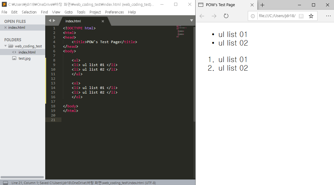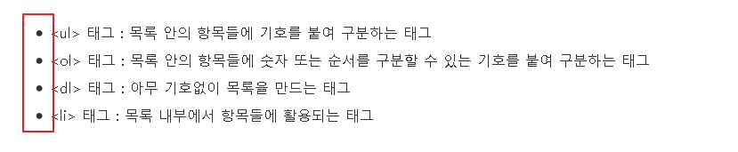 제가 굳이 위에 처럼 리스트를 만든 이유는 바로 위와 같이 웹페이지에서 표시되게 하는 태그이기 떄문입니다.