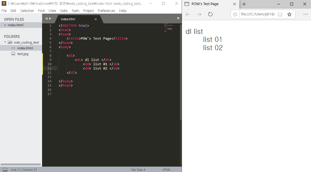 여기서 내부에 포함되는 태그는 <dt> 태그와 <dd> 태그가 있습니다.