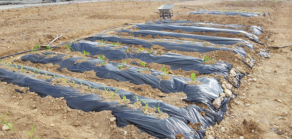 그래서 고랑을 하나 만들고 비닐을 씌우고 하는 작업을 반복해서 계속 해줬습니다.