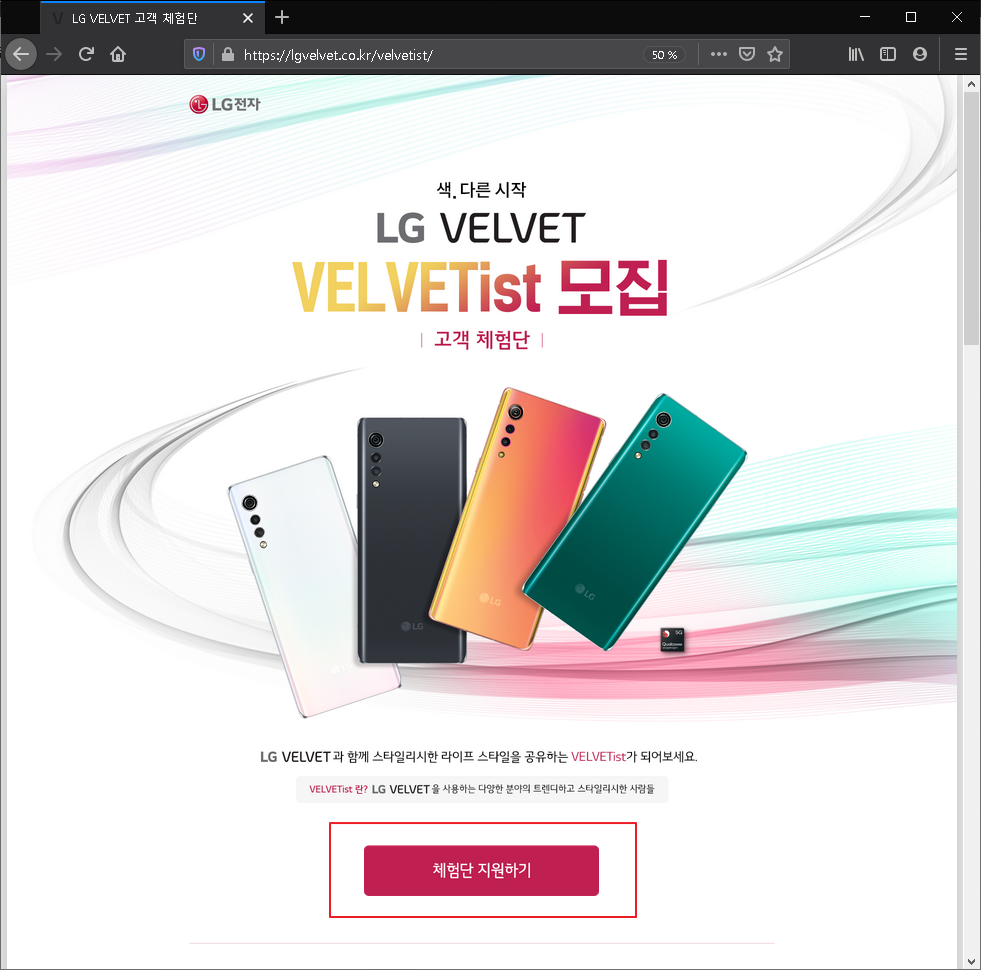 "LG 벨벳(LG VELVET) 체험단 신청 방법"