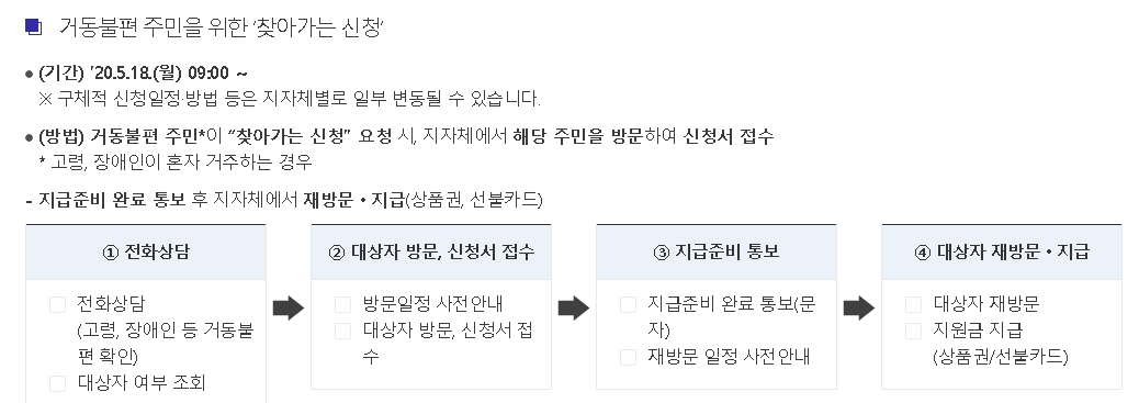 그리고 마지막으로 거동이 불편한 주민들을 위해 찾아가는 신청까지 받고 있습니다.