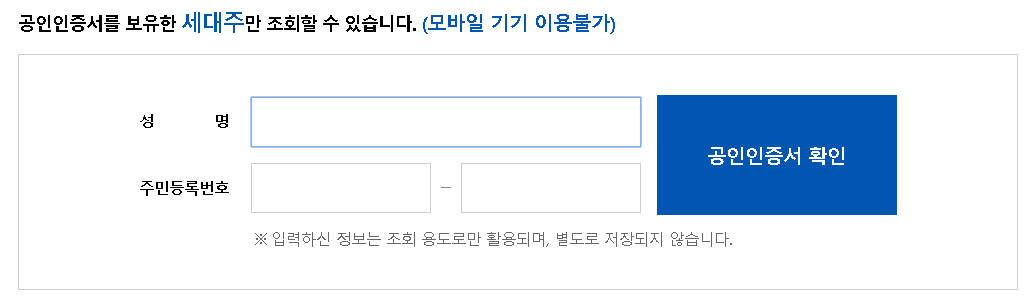 그럼 이름과 주민등록번호를 입력한 뒤에 공인인증서로 확인해보겠습니다.