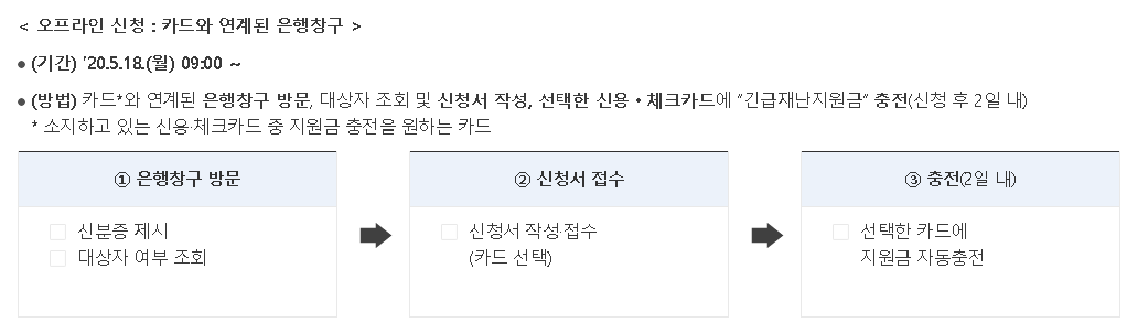 그리고 신청 기간은 지급 수단별로 다르고, 온라인으로 신청을 하는지 오프라인으로 신청을 하는지에 따라서도 기간이 조금 다릅니다.