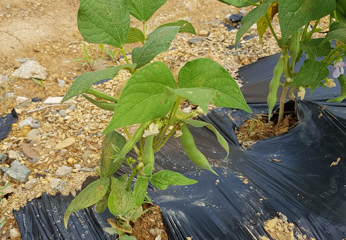 옆 텃밭에서 엎어온 콩을 그냥 몇개 파뭍어 두었더니 어느새 자라서 콩이 맺혀 있습니다.