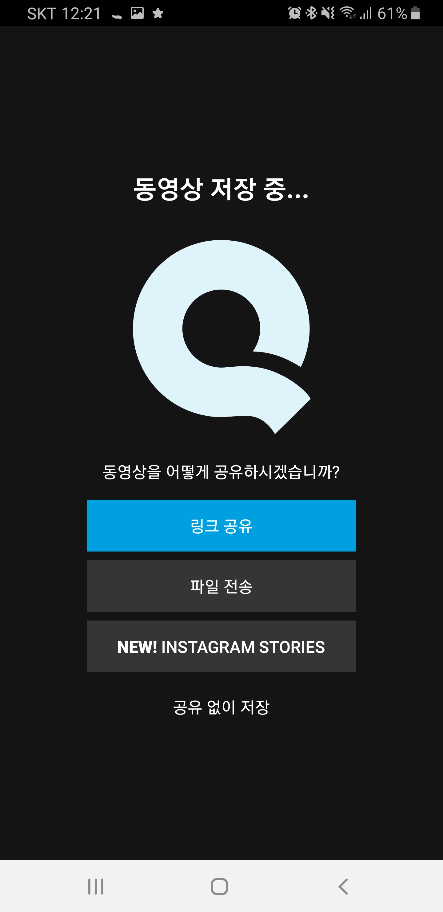 그럼 공유 없이 저장 버튼을 눌러 영상을 저장하겠습니다.