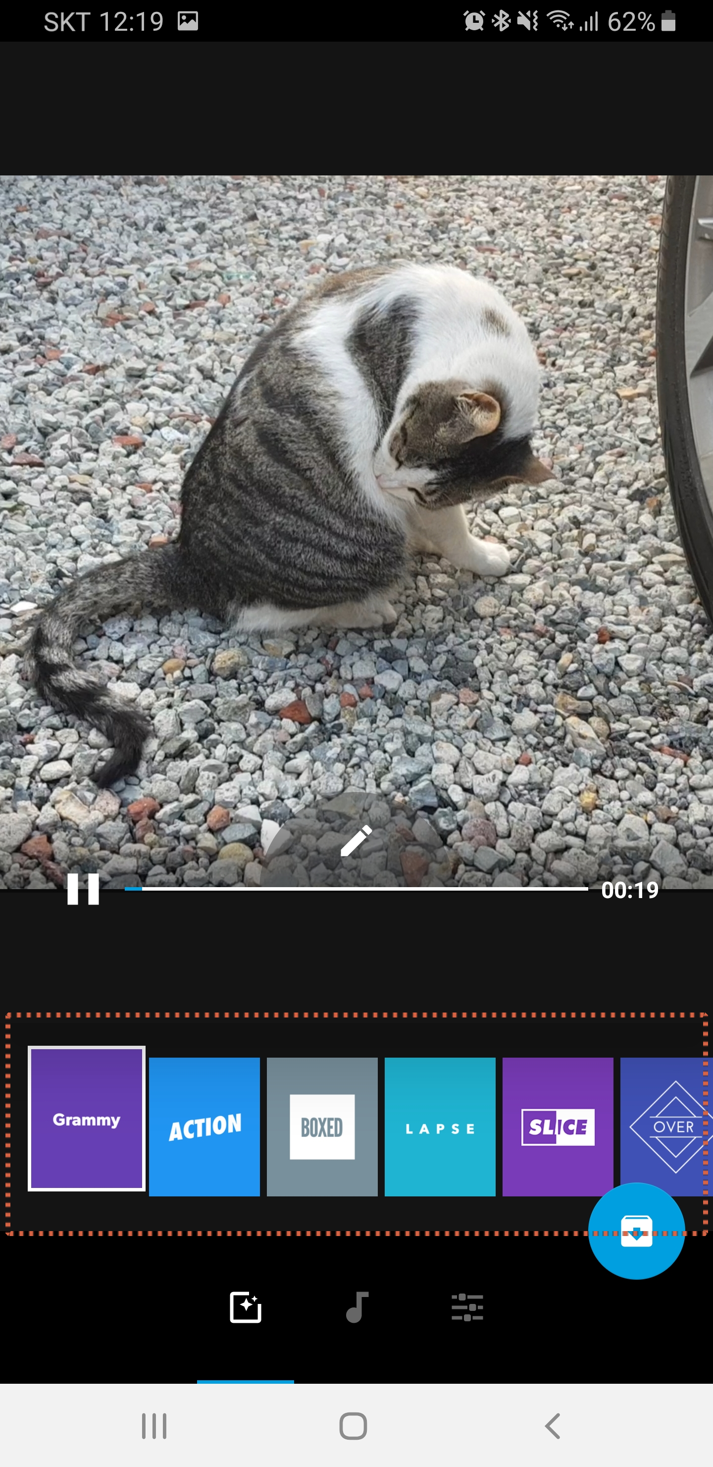 보시면 아래쪽에 빨간색에 자동으로 영상을 편집해주는 각종 효과들이 있습니다.