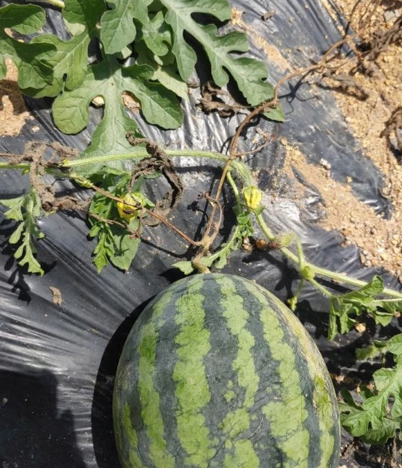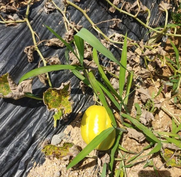 가지를 정리할 때 덩굴이 너무 우거져서 잘못 잘랐는지 수박이 달린 덩굴을 끊어서 줄기가 다 말라가고 있더라구요.