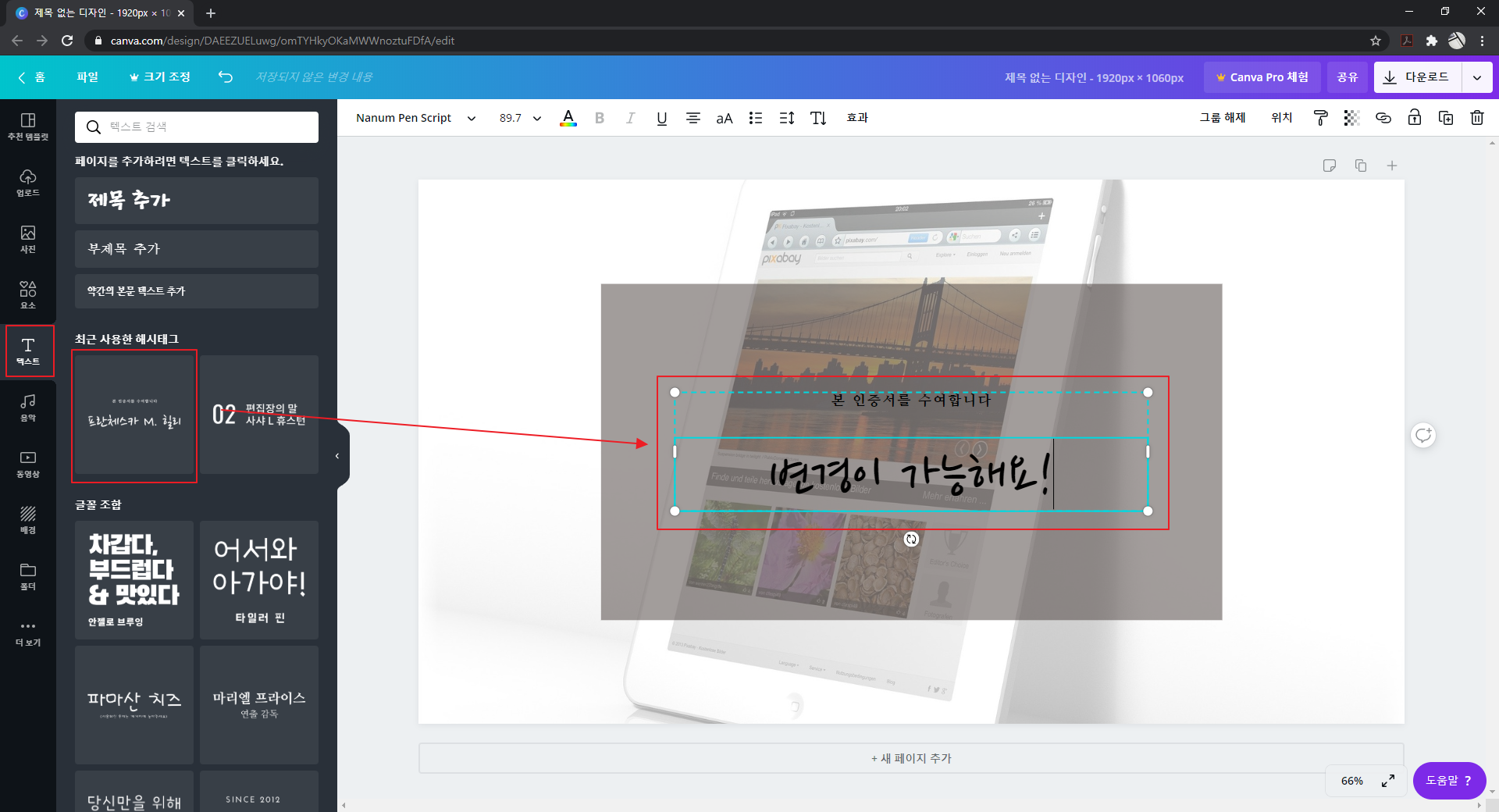 그림에서 처럼 추가된 글자는 수정과 변경이 가능합니다!