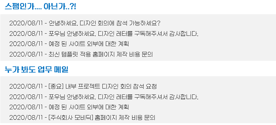굉장히 많은 업무 관련 메일을 받는 입장에서 이런 메일과 유사한 제목, 또는 정확하게 업무 내용을 확인할 수 없는 메일까지 모두 하나하나 메일을 열어보고 업무에 필요한가 아닌가를 판단할 수는 없습니다.