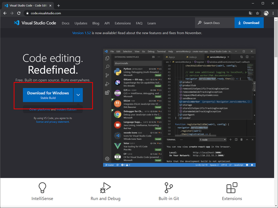 Visual Studio Code is a code editor redefined and optimized for building and debugging modern web and cloud applications. Visual Studio Code is free and available on your favorite platform - Linux, macOS, and Windows.