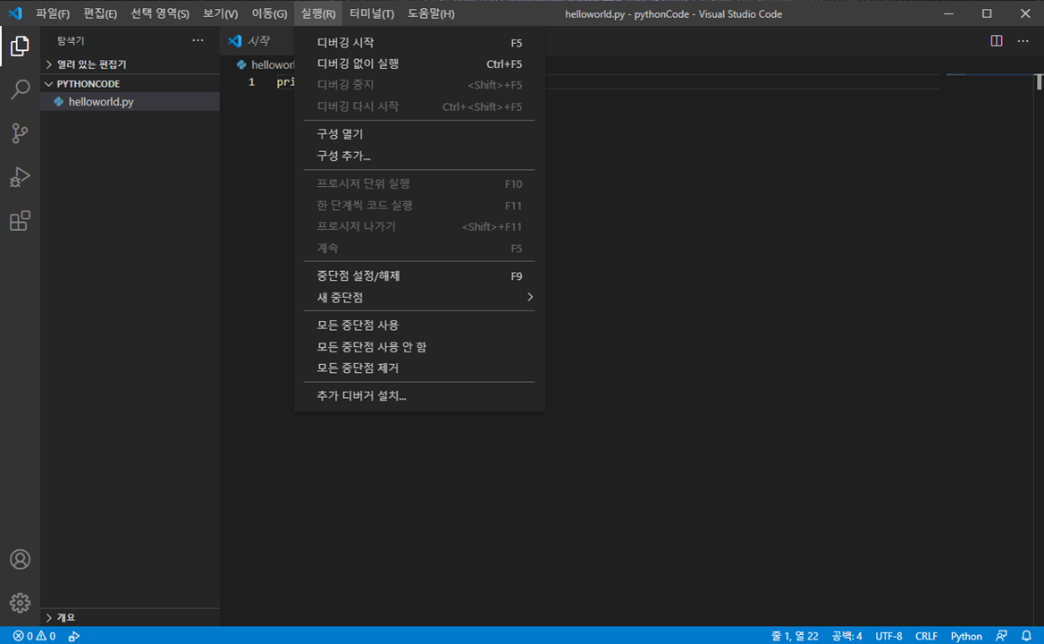 그리고 드디어 파이썬을 사용해서 첫 프로그래밍을 시작해보겠습니다.