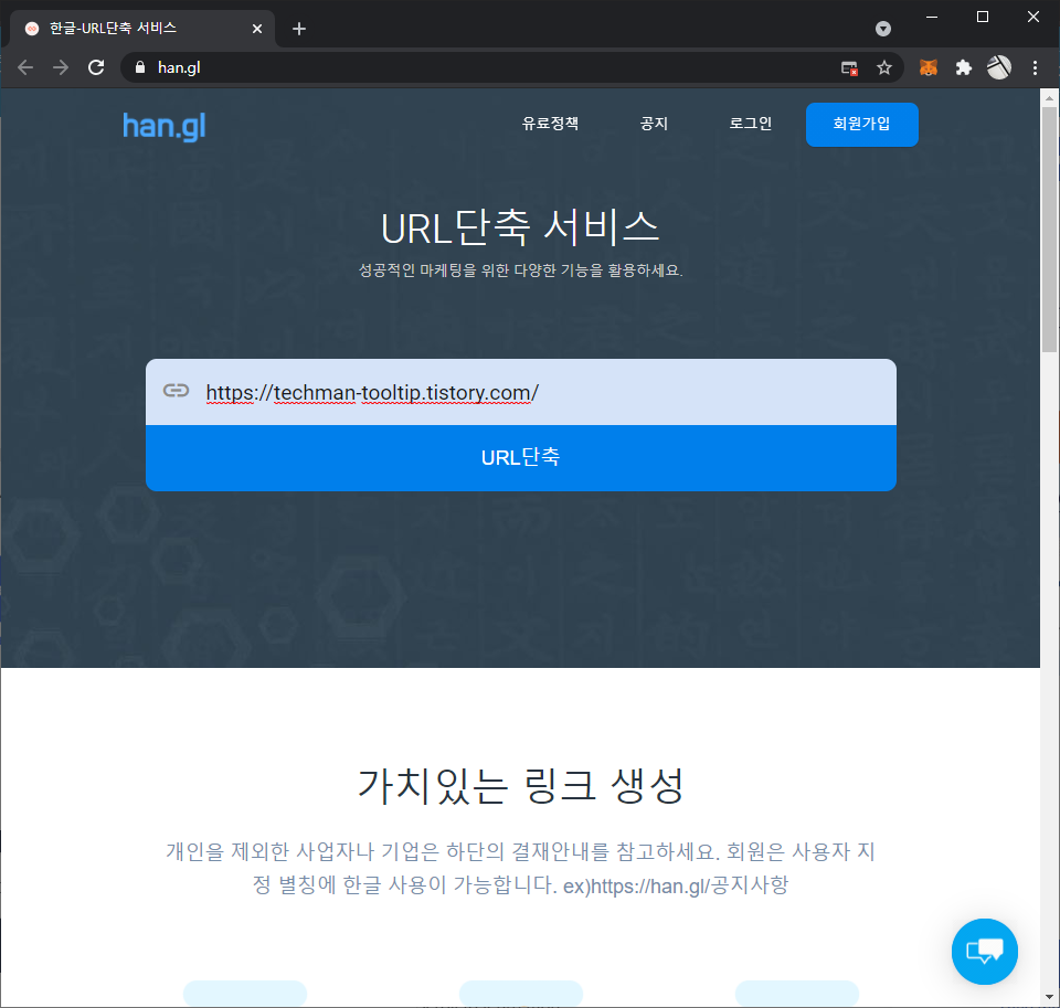 간단하게 위 링크를 따라 이동하면 단축 URL을 만들 수 있는 웹사이트가 나타납니다.