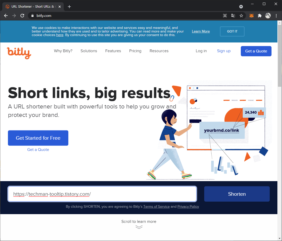 이전에 편하게 사용했던 URL 단축 사이트로는 구글의 주소줄이기로 사용된 goo.gl 사이트와 bitly 웹사이트가 있었습니다.