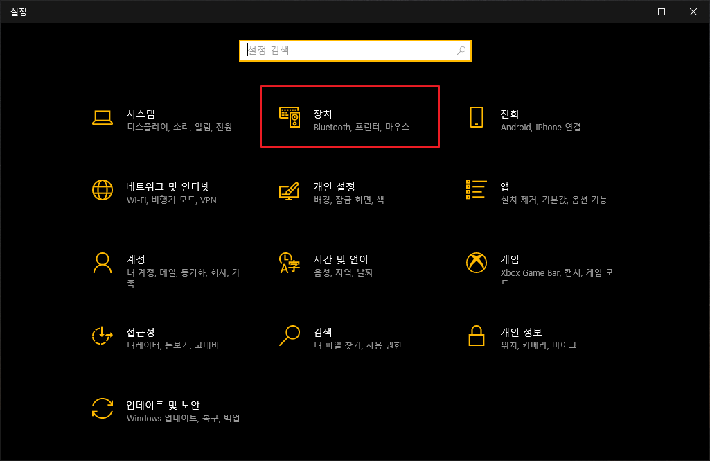 먼저 [설정]에 들어가보시면 [장치]라는 버튼이 보이실 것입니다.