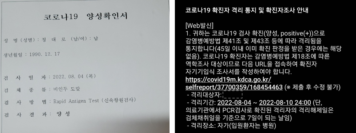 예... 이로써 저는 코로나 확진이 되었습니다.