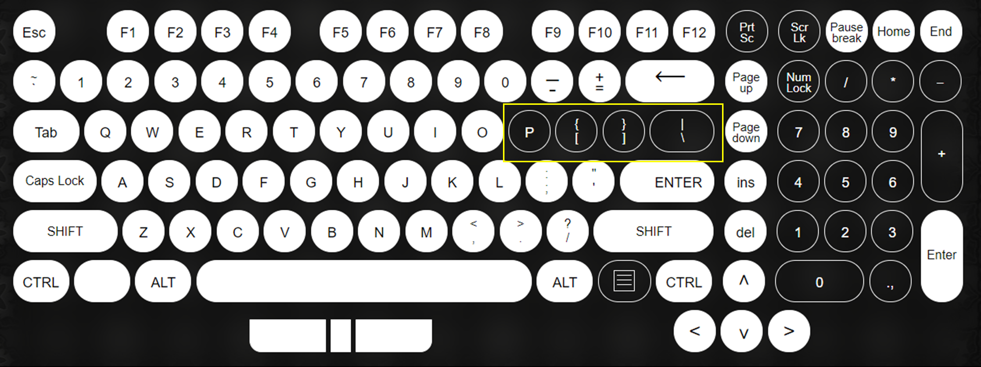 그런데 P키 부터 \ 키 까지는 스위치의 핀도 정상이고, 다른 키보드의 스위치를 결합해도 인식을 끝까지 하지 않네요.