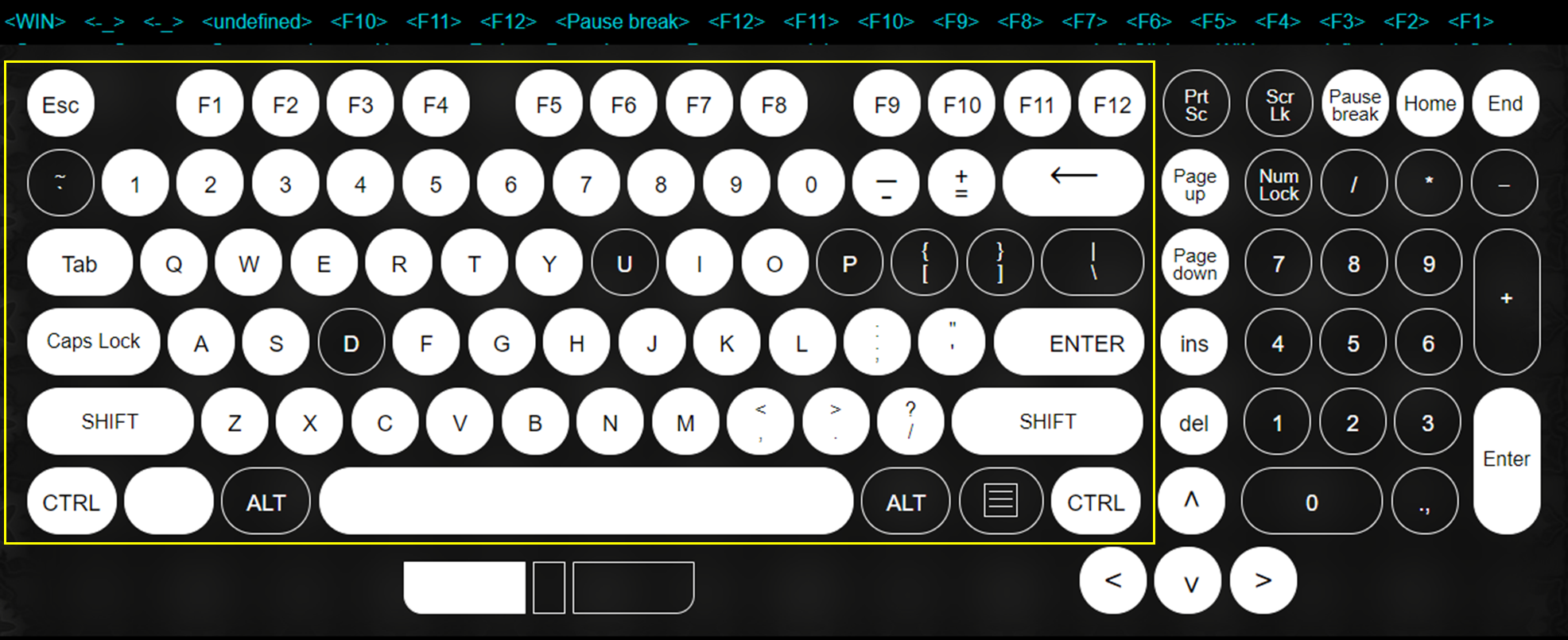 위에 그림에서 제가 표시한 노란색 네모 공간 안에 모든 키가 눌려야지 정상인데요.