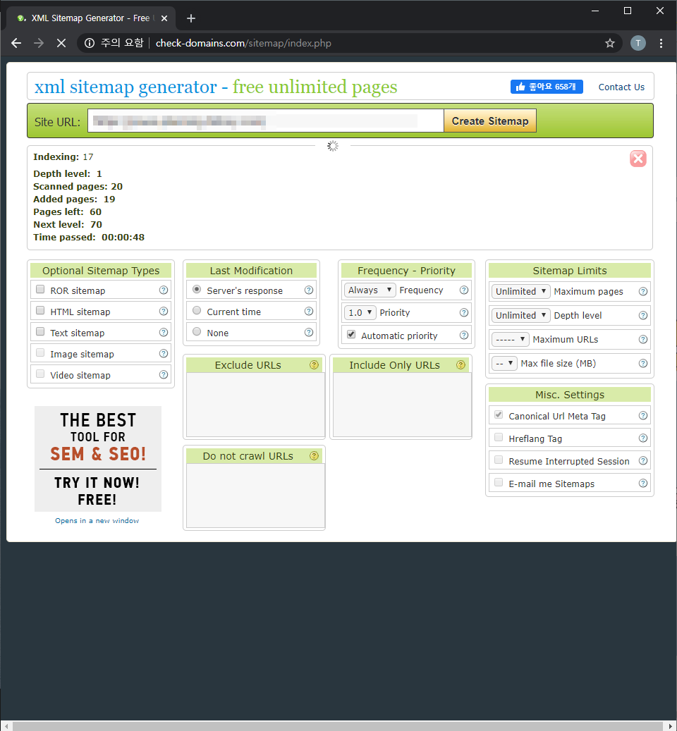 제가 사용하는 사이트맵 생성 사이트는 다음 링크를 통해 이동할 수 있습니다.