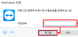 여기서 비밀번호는 내 PC의 비밀번호가 아니라 '원격접속을 하고 싶은 PC의 팀뷰어 비밀번호'를 입력하셔야 됩니다.