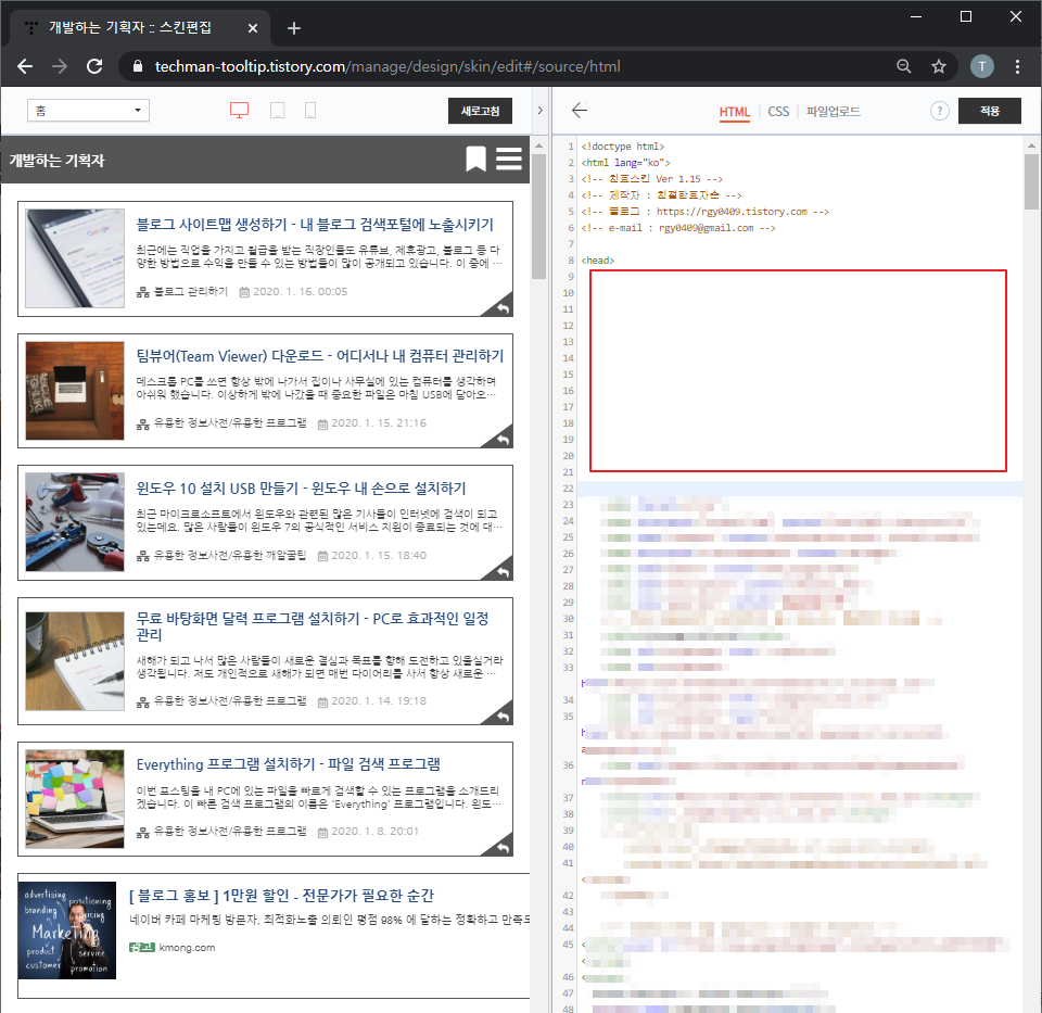 그래서 몇칸 띄운다음에 '<head>' 바로 아래에 복사한 코드를 붙여 넣으시면 됩니다.