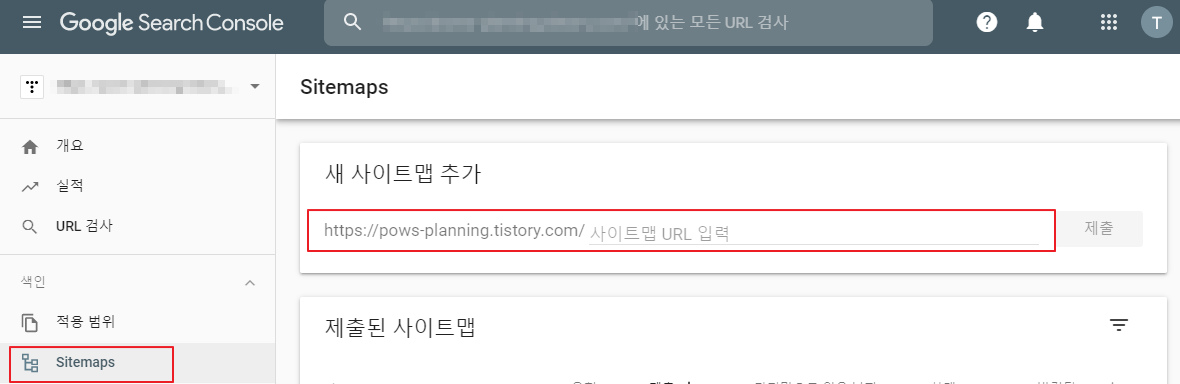 이런 다음에 다시 구글서치콘솔로 넘어와서 아까 그 확인을 누르면 내 블로그 주소로 된 구글서치콘솔 페이지를 확인할 수 있습니다.