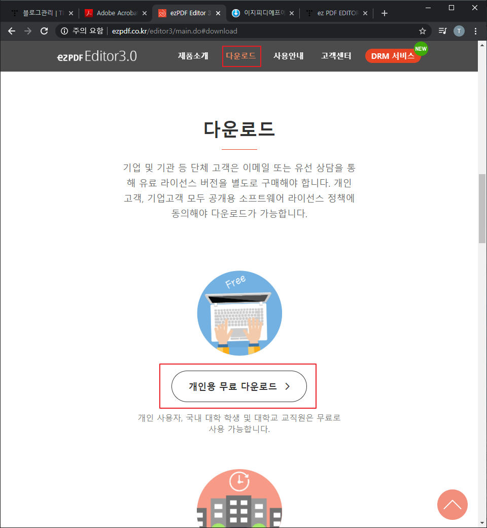 이동된 화면에서 '개인용 무료 다운로드' 버튼을 눌러 주시면 됩니다.(무료 프로그램 너무 좋아!!)