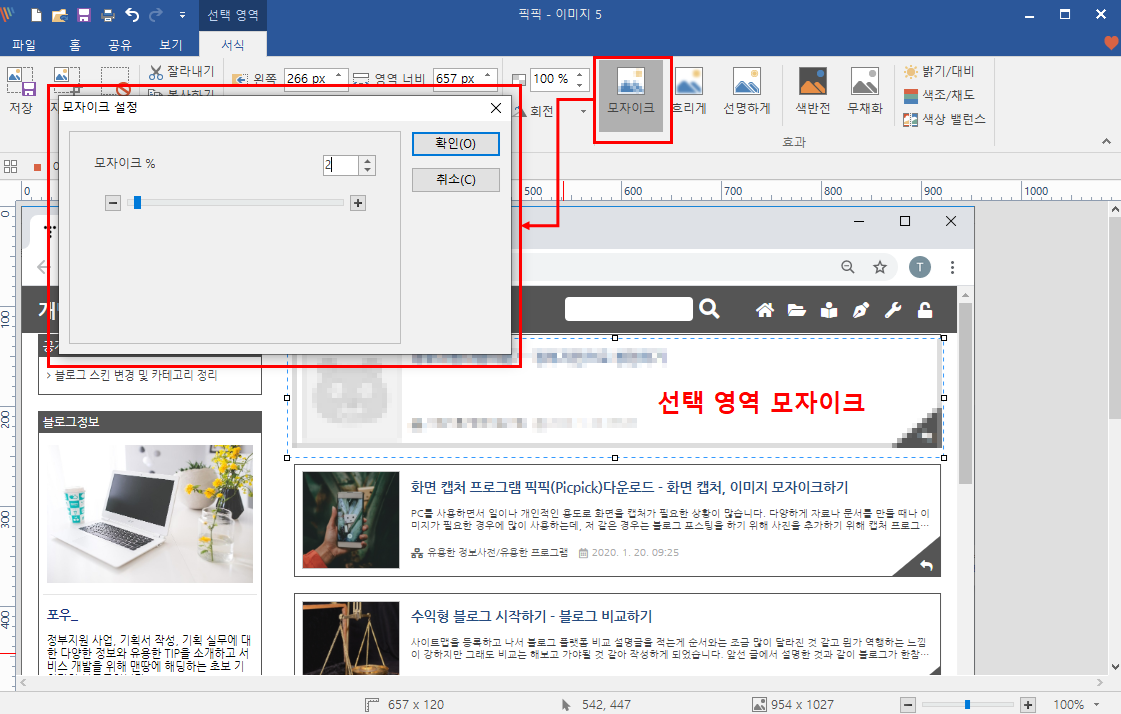 이런 경우 저는 픽픽 프로그램의 모자이크 기능을 자주 사용합니다.