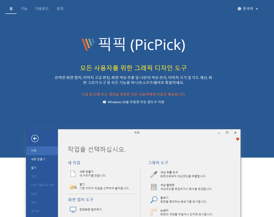 먼저 픽픽 프로그램은 기본적으로 무료로 제공되는 프로그램입니다.