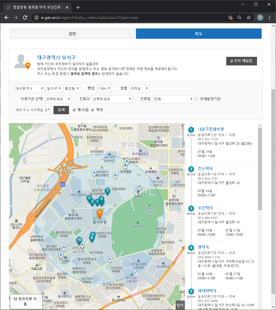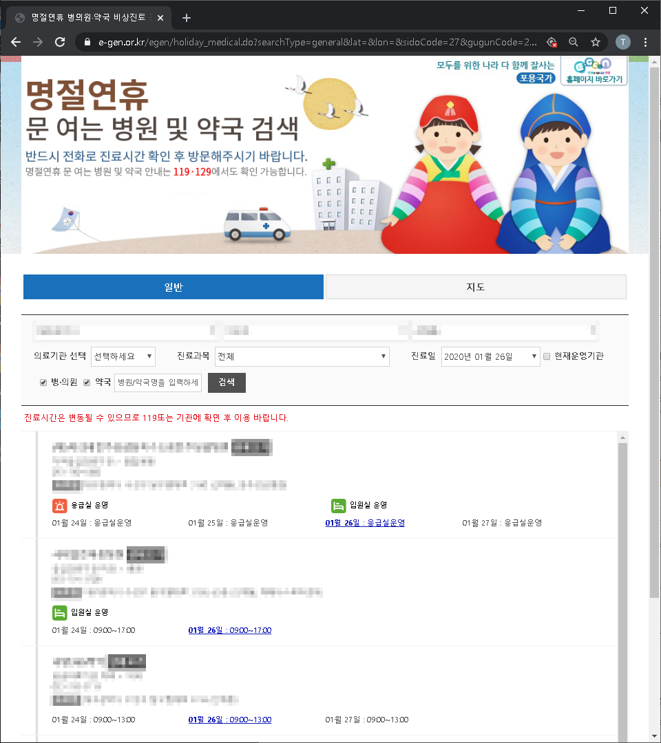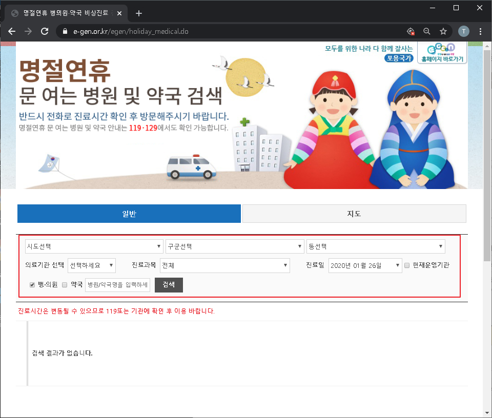 명절연휴 병의원·약국 비상진료 검색-일반 | E-GEN통합홈페이지