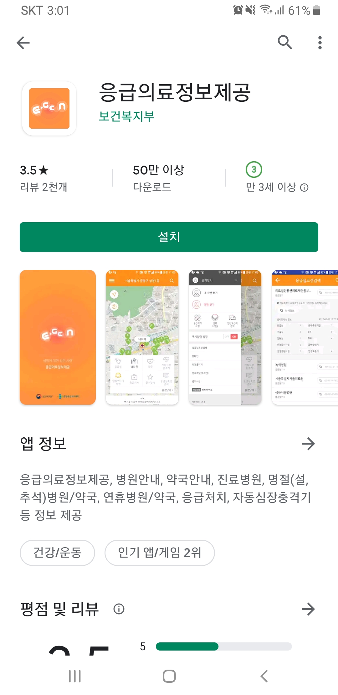 그리고 스마트폰을 통한 '응급의료정보제공' 앱으로 쉽게 관련 정보를 찾을 수 있습니다.