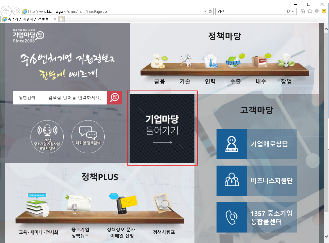 1. 기업마당(http://www.bizinfo.go.kr/cmm/main/introPage.do)