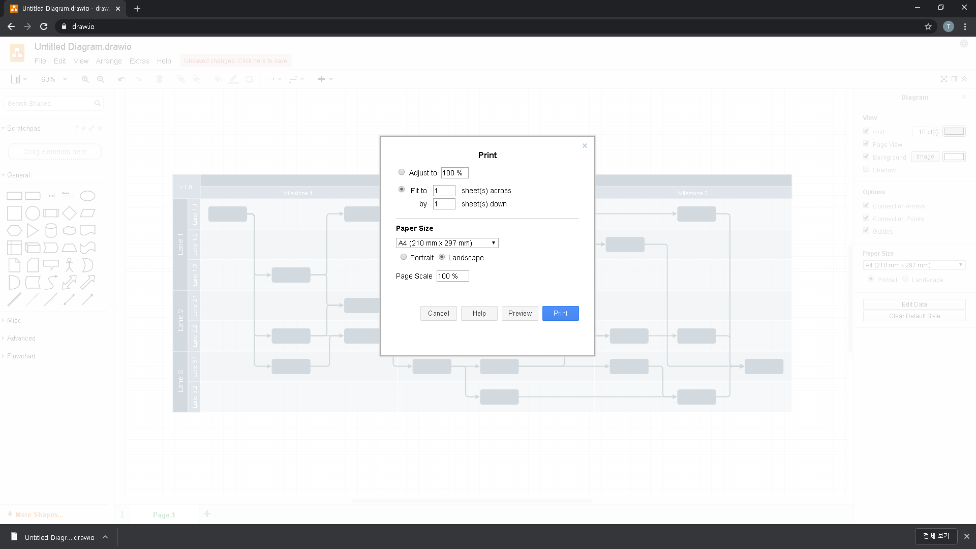 생성하고 나서 보니까 참고만 하고 실제 저한테 필요한 다이어그램이나 플로우 차트는 안에 들어가서 하나씩 그리는 것이 오히려 제가 원하는 플로우차트를 원할 수 있는 방법일 수도 있을 것 같다라는 생각이 들었습니다