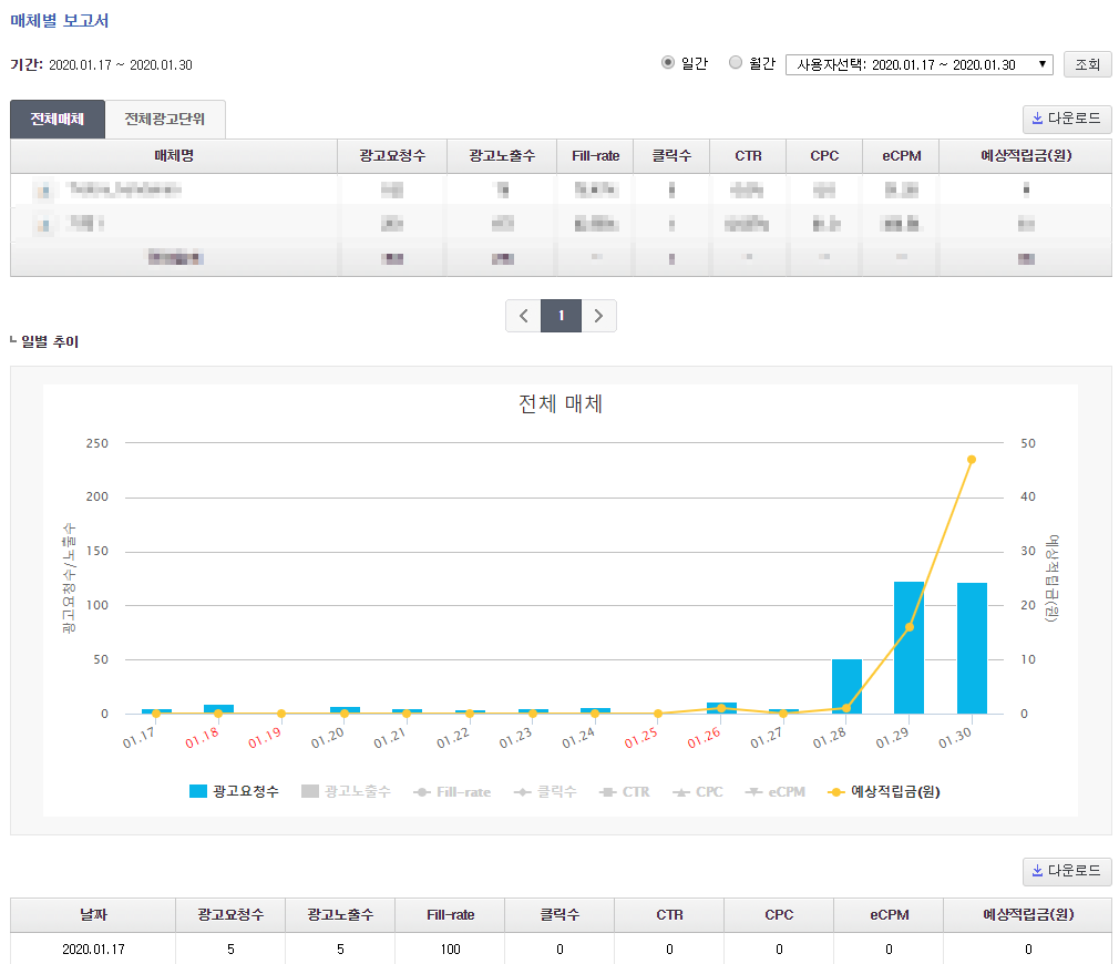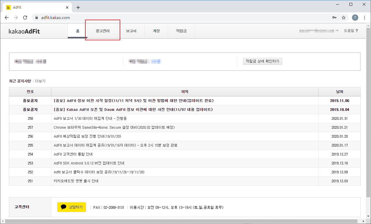 그래서 저는 이 기간동안 애드핏을 이용했습니다.