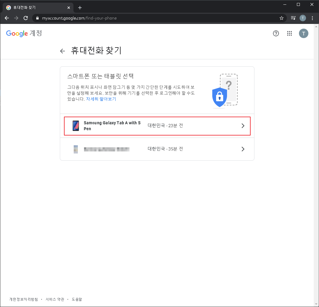 해당 기기 위에서 클릭을 하게 되면 다음과 같이 휴대전화 찾기 화면으로 이동하게 됩니다.