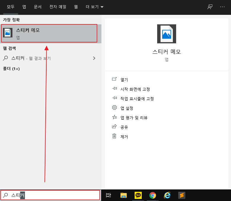 일단 윈도우 10 스티커 메모는 별다른 다운로드 없이 사용 가능합니다.